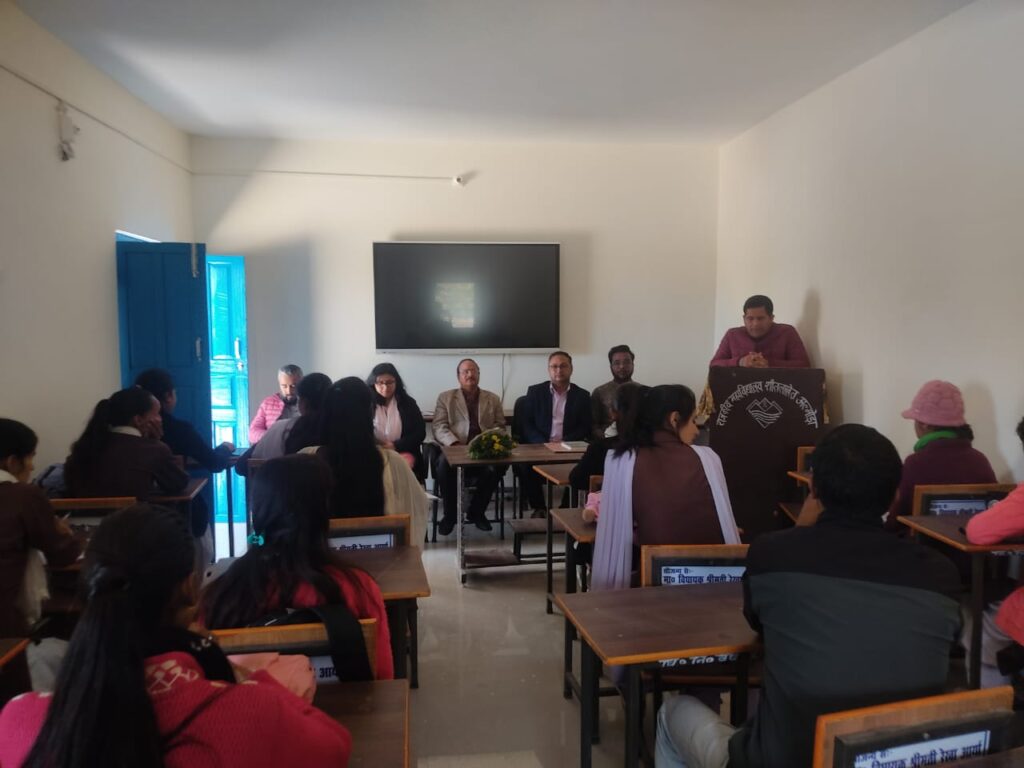 राजकीय महाविद्यालय शीतला खेत अल्मोड़ा में आज दिनांक 29.03.2023 को कौशल विकास उन्मूलन अंतर्गत राष्ट्रीय प्रशिक्षुता संवर्धन योजना की विस्तृत जानकारी श्री चंद्रेश कांडपाल जी अनुदेशक ब प्रभारी एवम सौरभ कुमार कनिष्ठ सहायक औधोगिक प्रशिक्षण संस्थान खूंट, अलमोड़ा ने दिए। विद्यार्थियों को बहुत ही सहज तरीके से NAPS में जिन विद्यार्थियों के मोबाइल में नेट चल रहा था उन्हें एक एक कर के NAPS में पंजीकरण करवाए और मेल के द्वारा KYC को upload करने की सलाह दिए।श्री सौरभ कुमार ने NAPS के व्यावहारिकता से विद्यार्थी को समझाया। कार्यक्रम का संचालन डा प्रकाश चंद्र जांगी एवम डा दीपिका आर्य द्वारा पुष्प गुच्छ भेट कर स्वागत किया गया। महाविधालय के अन्य प्राध्यापक एवम कर्मचारी उपस्थित रहे। महाविधालय के प्राचार्य ब संरक्षक प्रो ललन प्रसाद वर्मा ने सभी का आभार व्यक्त किया। प्राचार्य महोदय ने केंद्रीय विश्वविद्यालय प्रवेश परीक्षा CUET एवम रूट्स टू रूट्स की जानकारी दिए।